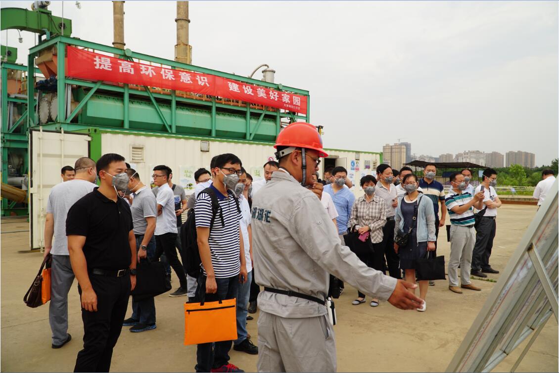 与会人员还参观了湖泊公司的大型土壤热脱附设备,现场工作人员介绍了设备工作原理及运行情况,该设备采用间接加热方式进行有机物污染土壤处置,加热温度最高达到600℃,可实现多环芳烃污染物的有效处置。